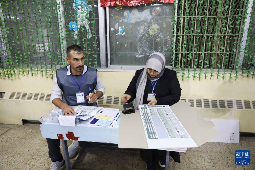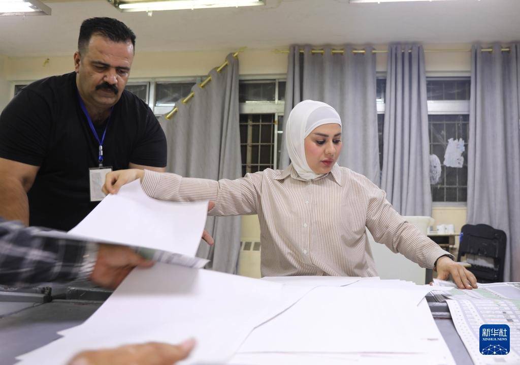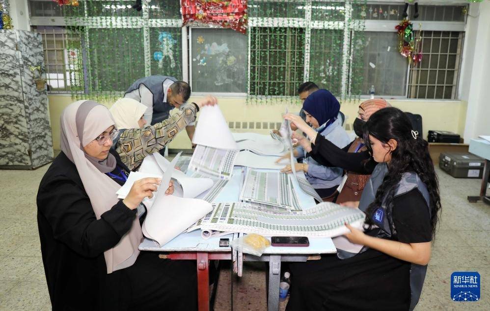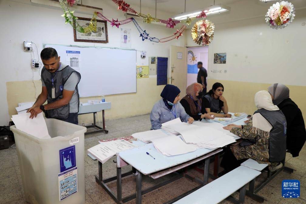 11月11日,工作人员在伊拉克巴格达一处投票站内清点选票。