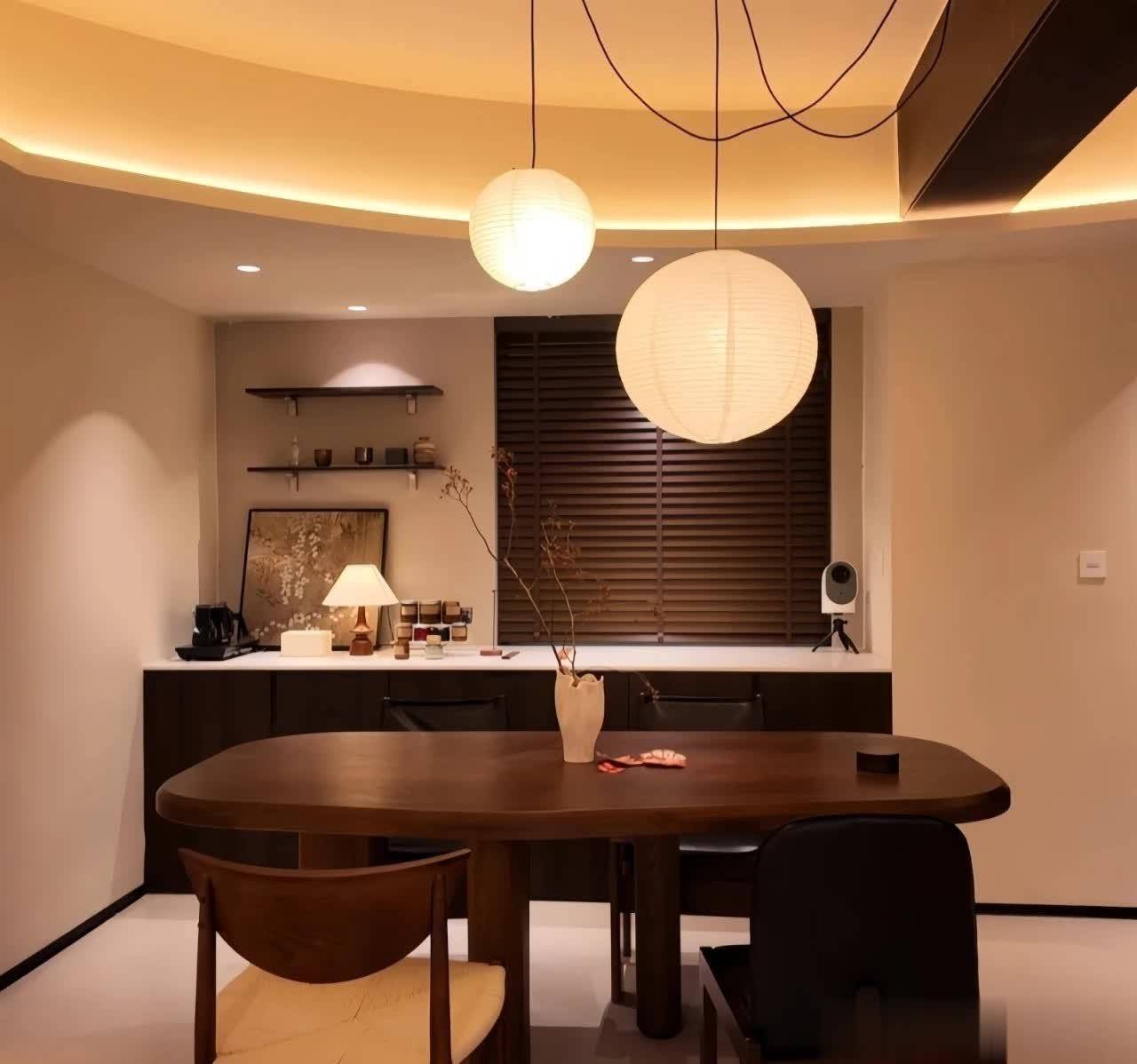 过高的吊灯会让灯光分散,无法聚焦餐桌区域,既缺少视觉重心,也难有温馨的就餐氛围,更谈不上质感可言。小小的调整吊灯高度,就能轻松扭转局面,让餐厅氛围感拉满。