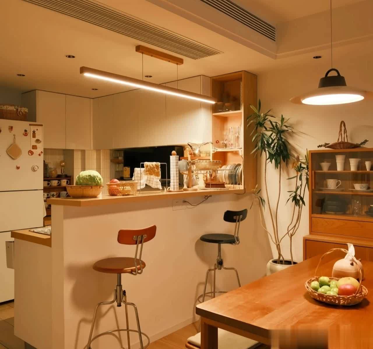 餐厅吊灯无需追求过高的悬挂高度,最佳高度是距离桌面80公分左右,这个高度能让灯光精准聚焦餐桌,形成视觉集中点,既能凸显桌面餐具与餐食的质感,又能让就餐区域更显温馨。灯光选择上搭配暖黄光,同时保证显色指数Ra90以上,柔和的暖光能中和空间的冷硬感,让家人就餐时更觉温暖,更能让烹饪好的菜肴色泽鲜亮,食欲也会随之提升,简单调整就为居家生活增添不少仪式感。
