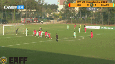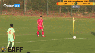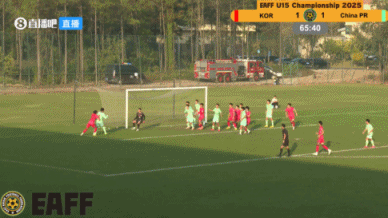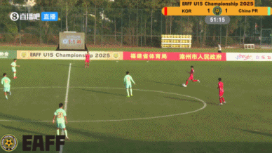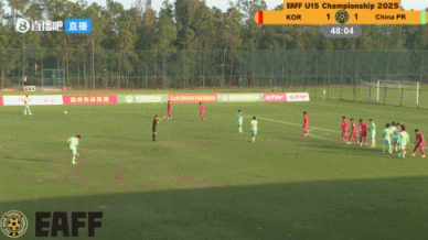 第52分钟,韩国U15角球造杀机,前点头球攻门转化为进球!1-1!韩国扳平了比分!↓