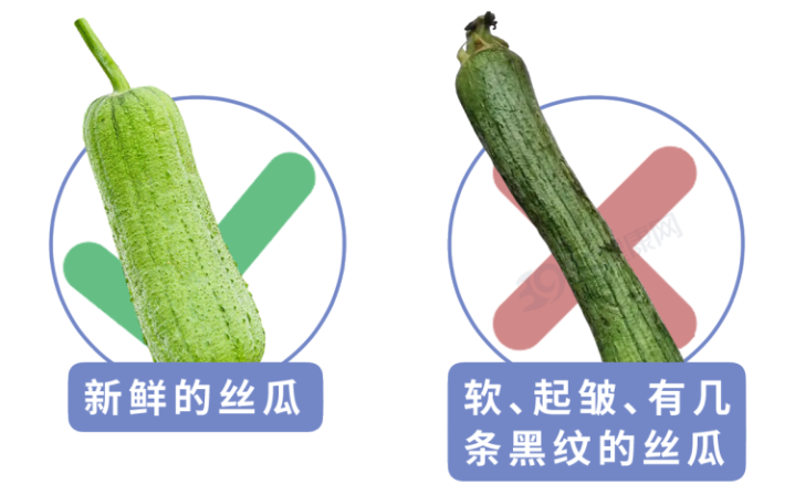 买丝瓜时,优先选择瓜形笔直、大小适中、颜色翠绿、表皮光滑又新鲜的,发软、发黄、起皱或带黑纹的最好别买。